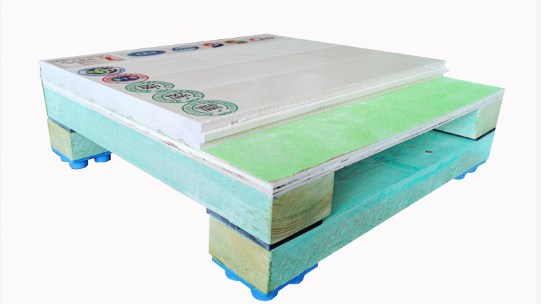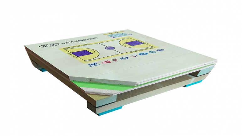 雙層板上下龍骨雙彈結構高吸震性和連續回彈性的固定懸浮式的運動木地板系統,適用于國內,國際比賽。