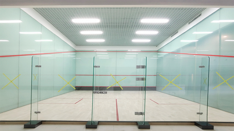 1. 全景玻璃壁球館采用專用12mm鋼化玻璃與五金件連接,結合安全性與美觀于一體,重要的是能夠迅速安裝和拆卸。